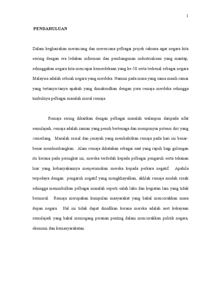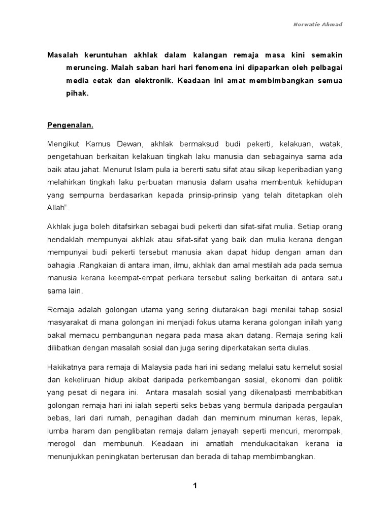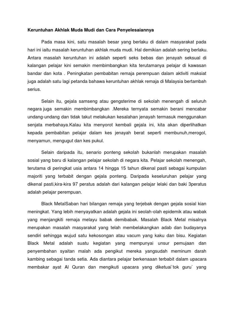 Karangan Panjang Keruntuhan Akhlak Dalam Kalangan Remaja Oleh Lydia Tang 4d Pdf