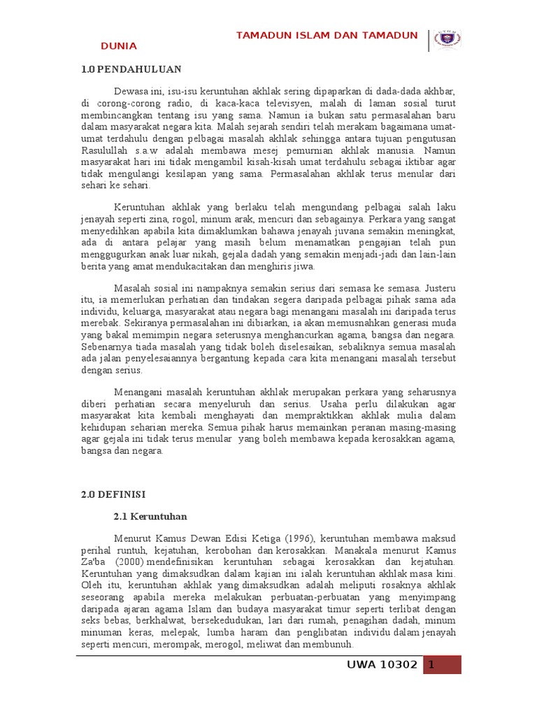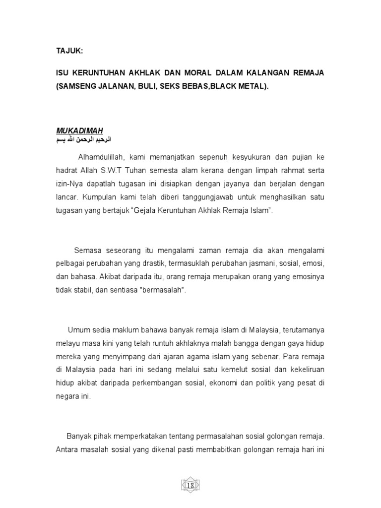 Doc Isu Moral Dan Keruntuhan Akhlak Remaja Mohd Noor Fazlan Azizan Academia Edu